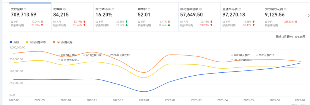 如何快速擴大流量?臺轍表示,“對醫廢新品進行推送,通過直通車、引力魔方、萬相臺多重計劃打造品類。在7月市場熱度最高期,保持店鋪產品的流量,擴大店鋪的流量來源。最終,店鋪整體流量在7月上升了50%。”
