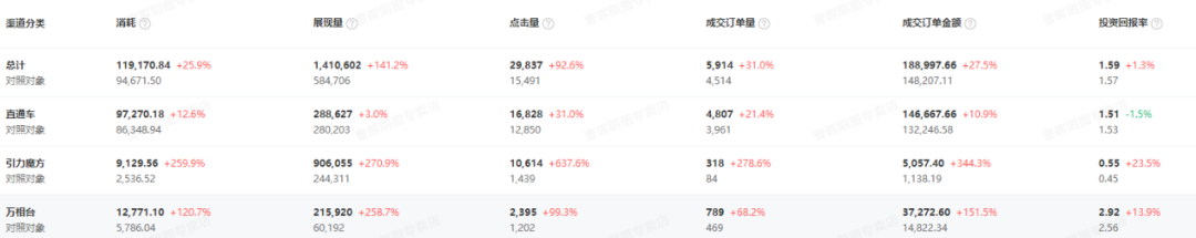 其次,在付費版塊的難點上,臺轍為店鋪付費板塊進行多重布局,細分店鋪品類計劃。拉新引流轉化,計劃進行細分,通過直引萬渠道結合,成功拉新轉化,7月新客上升14%。
