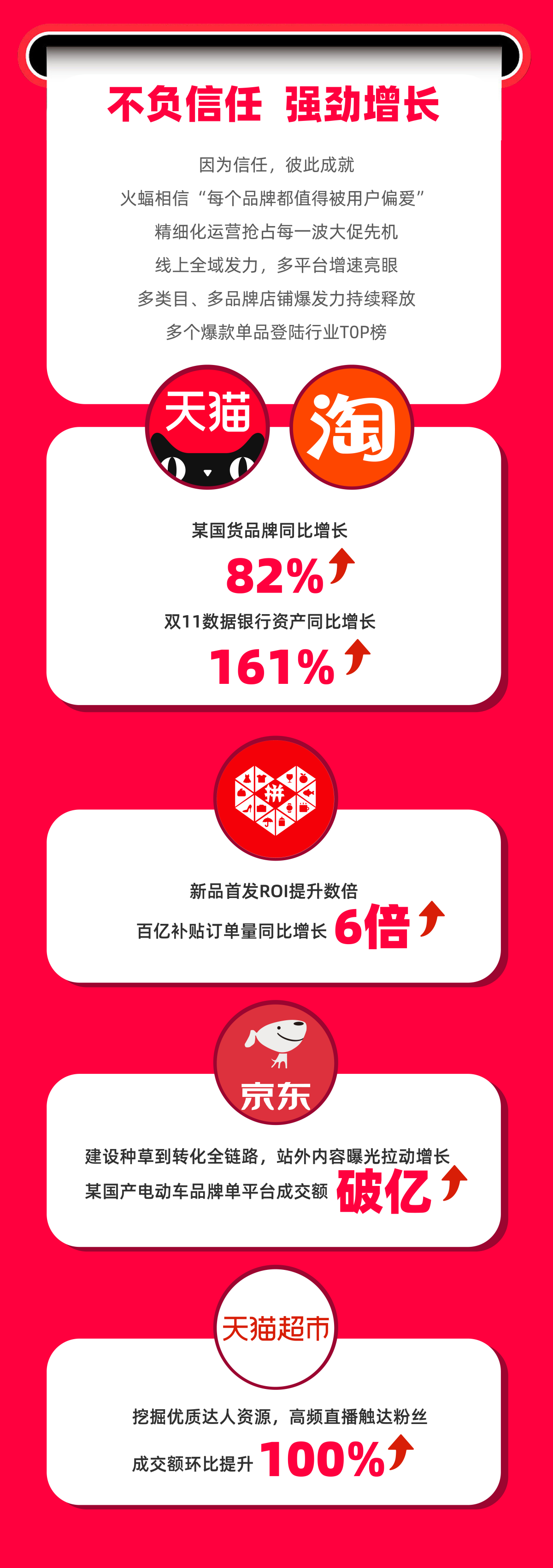 對電商行業(yè)而言,雙十一是一個意義舉足輕重的風向標。從各家戰(zhàn)報來看,電商已經(jīng)從唯GMV論,正一步步向高質(zhì)量發(fā)展。以火蝠電商為代表的品牌服務(wù)商,深刻地認識到,精細化運營賦能蓄力、以全域思維完成營銷閉環(huán),通過幫助品牌方在全渠道吸引消費者關(guān)注,取得品牌增長,更能夠提升合作品牌的營銷確定性,建立更為穩(wěn)固的信任關(guān)系。