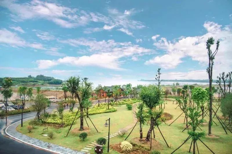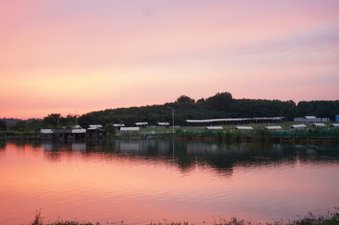 “采菊東籬下,悠然見南山”,湖水、微山、果園、樹木、草、風(fēng)、花、夕陽、飛鳥、鳴蟲、竹籬、小木屋.……還有當(dāng)日偶遇的像棉花糖一樣飄蕩的云朵和靜謐的藍(lán)天,仿佛就是陶淵明筆下的夢(mèng)想境地。